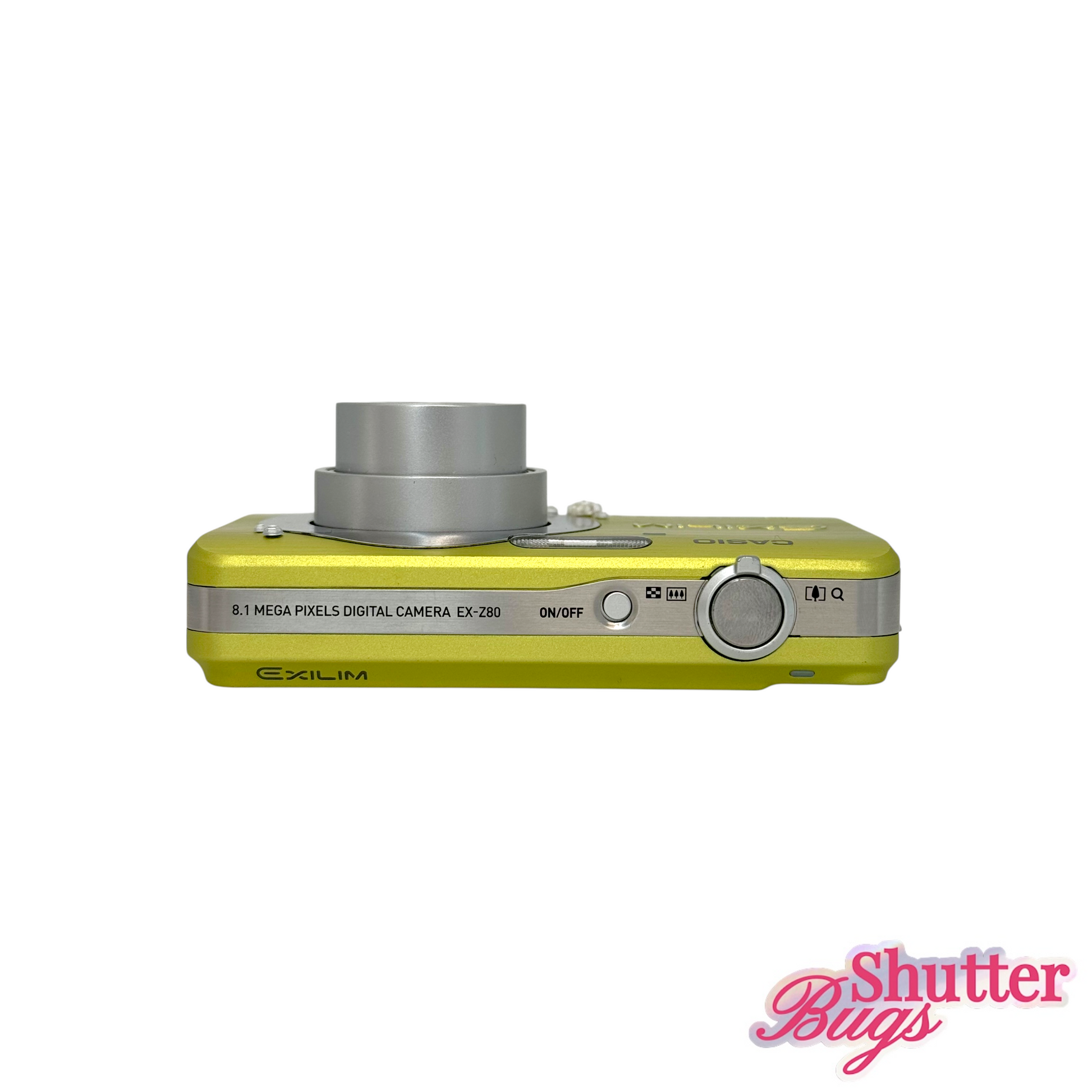 Includes everything needed to shoot! This ultra slim, metallic green digicam is your ultimate Y2K accessory! Offers a ton of creative shooting modes, a bright flash, and easy auto mode which is great for beginners!