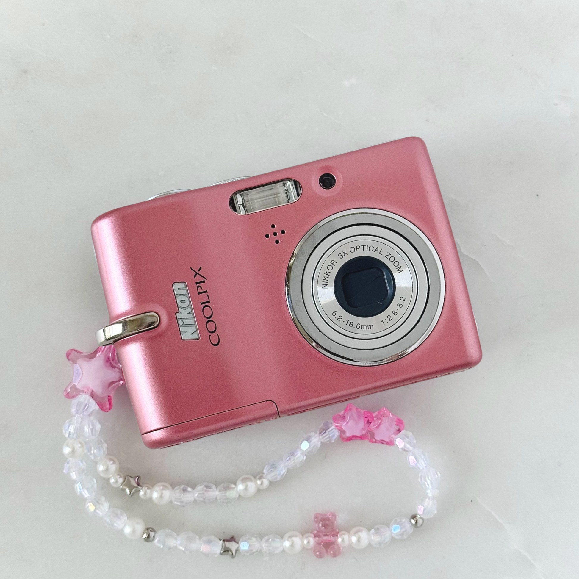 This compact, peachy pink digicam captures nostalgic photos with that classic mid 2000s glow! Easy to use and small enough to pop in your purse for nights out, concerts, and everyday shooting